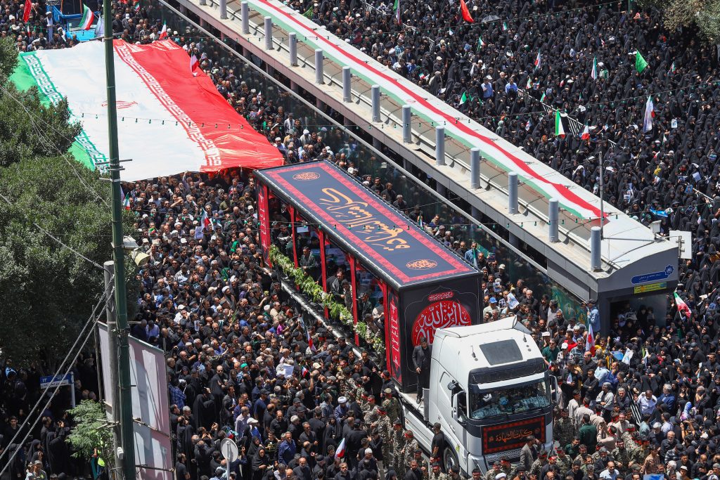 ونقل التلفزيون مواكب جنازة “شهداء الحرب التي فرضها الكيان الصهيوني”، وظهرت في المشاهد نعوش ملفوفة بالعلم الإيراني وعليها صور القادة القتلى باللباس العسكري.ويشارك الرئيس مسعود بزشكيان في المراسم بحسب التلفزيون.