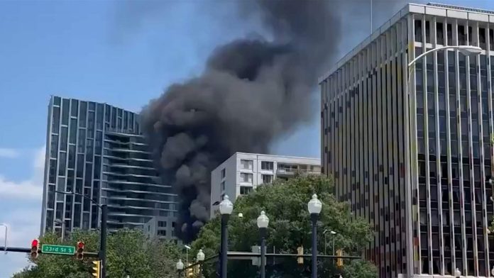 وارتفعت ألسنة اللهب والدخان الكثيف والألعاب النارية الحية في الهواء، في عرض ناري فوضوي شوهد على بعد أميال.